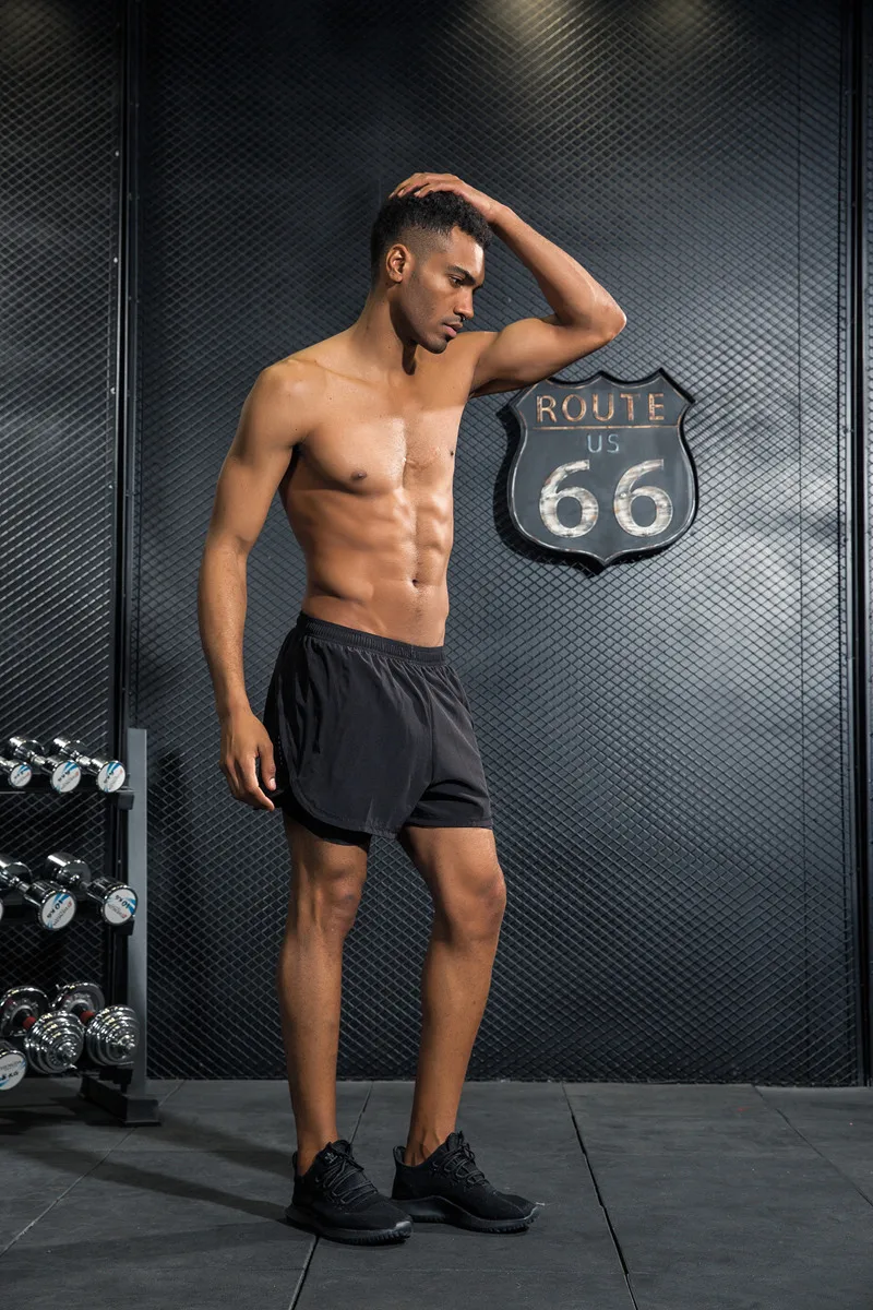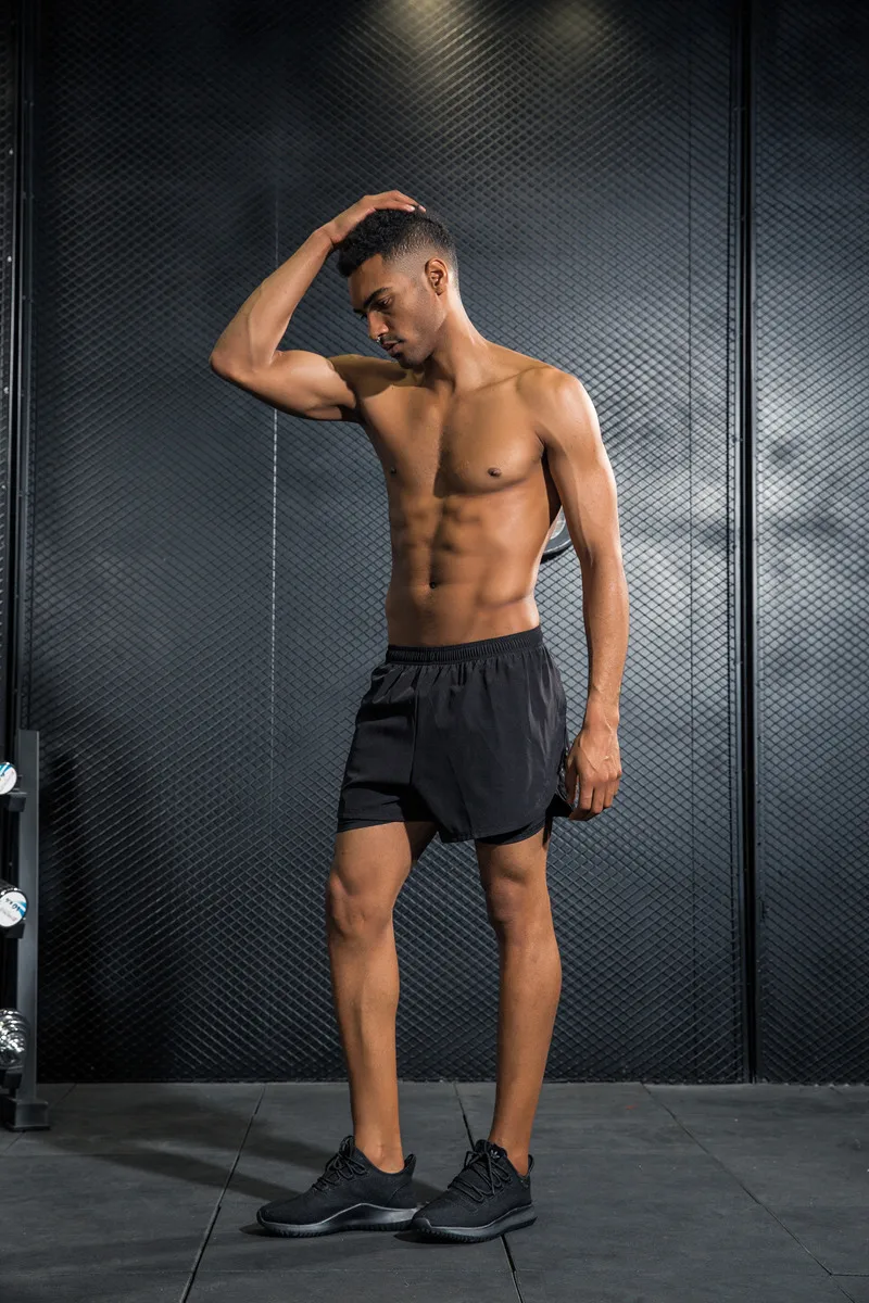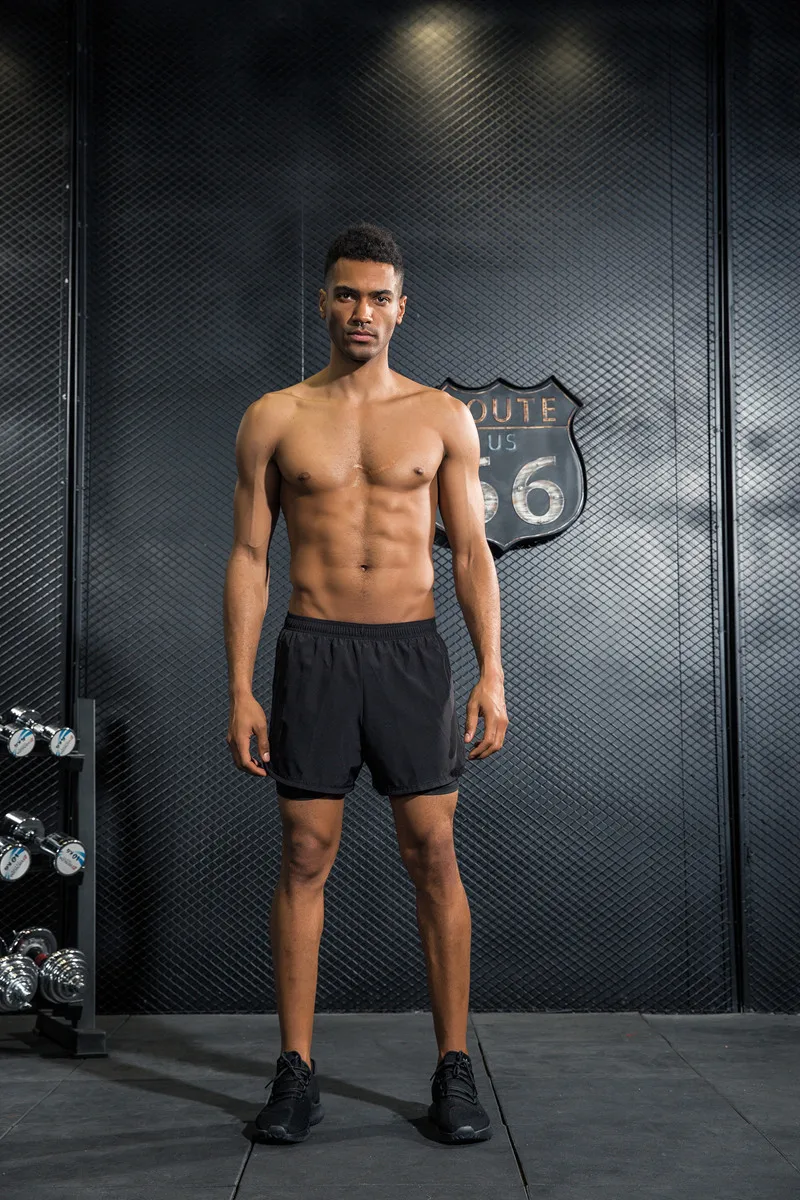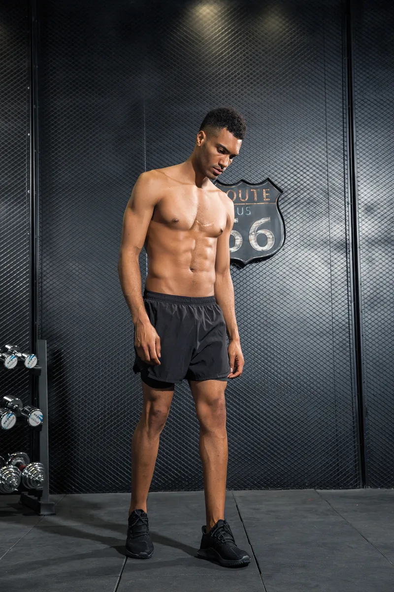 Promo Mens Shorts 2 In 1 Breathable Elastic Running Shorts with Compression Black Boxer Lining Inside Fit